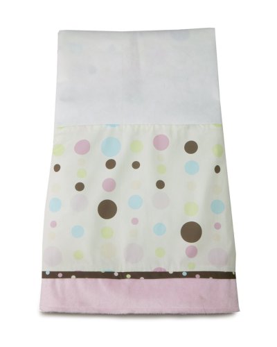 Dust Ruffle: White with multi-colored dot print and pink trim. 100% cotton. 14" drop.