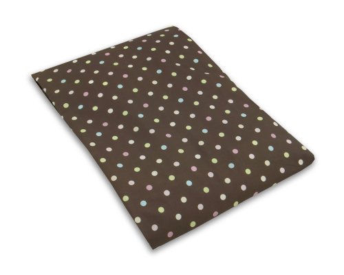 Fitted Crib Sheet: Chocolate brown with multi-colored polka dot print. 100% cotton, 200 thread count. Fits standard 28" x 52" crib mattress.